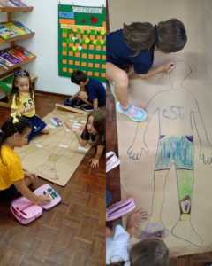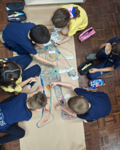 Os 1ºs anos vem explorando as partes do corpo humano. Essa atividade é fundamental para o desenvolvimento da consciência corporal, da linguagem e da autonomia. Nessa fase, segundo Jean Piaget, a criança aprende a partir de experiências concretas, e reconhecer o próprio corpo ajuda a organizar seu pensamento e sua relação com o mundo. Além disso, como destaca Henri Wallon, o corpo está diretamente ligado às emoções e à construção da identidade, tornando esse aprendizado essencial também para o desenvolvimento afetivo.