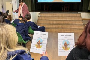 Os alunos dos 6°s anos, nesta terça-feira, tiveram um momento muito especial com nossa querida Irmã Leda Rabuske, que nos falou sobre sua vida, sua história e sobre os valores franciscanos — ensinamentos deixados por São Francisco de Assis, que continuam sendo muito importantes para vivermos com mais paz e empatia. São Francisco de Assis foi um homem simples que amava a natureza, os animais e todas as pessoas. Ele nos ensinou a viver com alegria, humildade e respeito — não só com os outros, mas também com o planeta em que vivemos.